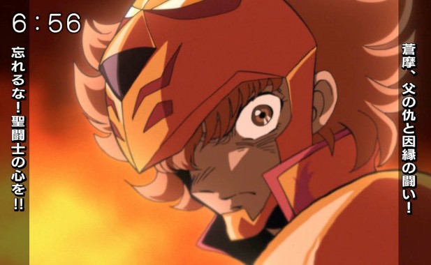 とってつけたような栄斗の過去エピソードと因縁を作るという、見本のような脇エピソード。ちゃんと友情・努力で勝利しているわけだからテンプレ的には何の問題も無い展開となっているが、それにしたっておざなりだよなぁ。結局忍びの謎も何一つ解明されなかったし……多分そのへんの設定についてはもう説明は無いだろうな。とにかくこの世界には忍びがいるんだよ。そして聖闘士もいるんだよ。お互いに「妙な装束」って思ってるんだよ。世間一般の人たちは聖闘士の存在を知らなかったはずなんだけど、栄斗の兄者がまるで甲子園でも目指すかのように「俺、聖闘士になるわー」って言ってたことを考えると、忍びの里では聖闘士っていうのは常識として扱われてたんでしょうね。まぁ、情報に長けた集団のはずだから、裏ルート情報でそういうことも知ってたんでしょう。兄者がなんで聖闘士になりたいと思ったのかはさっぱり分からないけど(そしてちゃんとなれてるのがすごいけど)。 結局、「お前は忍者なのか? 聖闘士なのか?」という訳の分からない問いかけにまるまる費やした30分であり、その答えは「どっちでも胡散臭いことには違いないわ!」というもの。「両立して何の問題があるんだよ」と思っている視聴者に対し、栄斗は「俺は聖闘士だ!」と叫び、次の瞬間に「水遁の術!」と叫ぶという大ネタを披露。番組ラジオで中の人も笑っていた「技のデパート(爆)」としての本領発揮である。ほら、やっぱり聖闘士って両立できるもんなんだよ。過去には坊主聖闘士や修復師聖闘士だっていたんだし。忍者ぐらい余裕ですわ。 強いて今後に影響するポイントをあげるなら、兄者を誅殺しにきた謎の聖闘士の存在があげられるだろうか。パライストラで蠢いていたイオニアさん配下の者だと思われるが、CV速水奨の時点でザコではないだろう。終始バックに時計をぶら下げているという謎の演出持ちだったので、まだ披露していない何らかの必殺技もあるんだろうし。ただ、見たところゴールドではないんだよね。今後の展開としては蒼摩に対してのソニア、龍峰に対しての玄武のようなライバルキャラスタンスになると思われるのだが、他の連中が敵幹部、ゴールドであるのに対し、今回のキャラは素性がさっぱり分からないのであんまりピンと来ないのである。ネタキャラ栄斗のライバルもネタキャラなんだろうか。時計が絡む能力ねぇ…………いっそ時間を戻して生命を維持出来るから不老不死の聖闘士っていうのはどうだろう(中の人的に)。「また速水奨殿が死なない役で出ておられる!」 まぁ、今回みたいに光牙は完全お休みで回りの要素を潰していく回も大事なので、箸休めとして見る分には悪くない話でしたよ。この作品の馬鹿さ加減は遺憾なく発揮されていたわけだし。龍峰が突っ込みキャラとして成立しないっていうこともよく分かったし。やっぱり蒼摩がいてくれた方が画面が締まるなぁ。蒼摩、一体誰に殴られていたんだろう……。しかも次回で全員集合ってことは、蒼摩の単独エピソードは無しか……がんばれ不遇のライオネット。 余談だが、今回の栄斗の兄者の中の人は、「三国無双」シリーズの司馬懿役、滝下毅氏。最近全然ゲームやってなかったもんだから久しぶりに声を聞いたのだが、何となくググったらちょっと前に同じく無双シリーズのガラシャ(鹿野潤)と結婚していたことを今更ながら知った。そしてガラシャの親父が光牙の中の人である。ややこしいな。