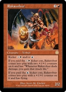 ラストエキスパンションは強い。誰がそんな話を始めたのかはよく分からないが、そんな噂がまことしやかに囁かれていた世界。そんな中で私は、まだまだMagic歴が浅かったために「えっ、でも、ラストエキスパンションってプロフェシーのことでしょ?」という反応しかできなかった。そんなかわいそうな私の認識もついに終わりを迎える。泣く子も黙るアポカリプスの登場だ!! もう、余計なことは言わずにカードリストを見てもらった方が早いエキスパンション、それがアポカリプスだ。インベイジョン、プレーンシフトと続いた多色環境であえて触れてこなかった「対抗色」をテーマにしたセットであり、「敵対色はマナが出しにくいからそのぶん強くても平気」という雑な理論から、とにかくカードパワーが爆裂しまくった夢のような世界。確かに、それまでの世界には友好色2色しか出せない土地が多く、前2つのセットで友好色が推されていたこともあり、敵対色でのデッキ構築はそれだけでハンデになったものだが、ぶっちゃけ、このブロックのドラフトは「もうインベイジョンとか無視してアポカリプスを待ち構えるために敵対色でデッキを組む」とかでも成立するレベルの強さだった(当時はラストエキスパンションを最後にピックした)。 初めてこのセットのカードリストを見た時には、もういろんなところで「えっ?! こんなカード刷っちゃっていいの?!」と仰天したものである。でもまぁ、そこから禁止カードが出るわけでもないし、今になって思えば見事な刺激を与えながらも絶妙なバランスを維持していたセットだったということなのだろう。いや、でもやっぱり見てるだけでテンションが上がるんですよ。そして、友好色→友好色→敵対色と渡らなければならないリミテッドも絶妙な戦略性を伴い、コワレを出さずに現実的なレベルでの試合が繰り広げられていた。コモンのカードを並べても「偽り」があり、「力の消耗」があり、「ゴブリンの軍団兵」があり……。もう、「僕、ずっと敵対色のおうちの子供になる〜」と駄々をこねるレベルである。 どのカードも印象深い(というかインパクトがでかかった)のでなかなか個人で思い出深いカードをピックアップするのも難しいのだが、あえてここから選ぶとすると……。