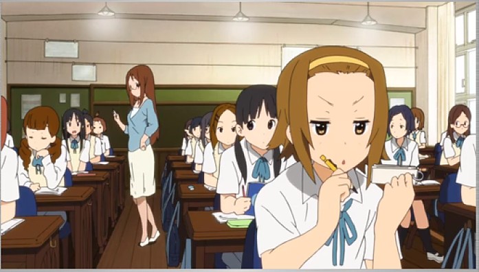 その上で、今回のエピソードで描かれたのは、まずは軽音部5人組の、ちょっとおかしなロケーションでのドタバタ劇。例えばファミレスでオーダーを巡ってバタバタする唯なんか、その心情が分かるだけに微笑ましくも馬鹿らしい。この際だから「尾行するのに制服姿で5人して楽器背負うのはどうよ」とかいう話は置いておくとしてね。他にも、今回最も異色だったのが、おでんの屋台で先輩の話を聞く面々。流石にこの組み合わせは想像出来なかった。そして、不思議と屋台をエンジョイしている面々が溶け込んでいるのが謎。その後の教室でのメモ回しから廊下へのコンボも、普段意外と授業中の描写がないだけに新鮮なシーン。ほんと、なんで女子ってああいうのが好きなんでしょうな。